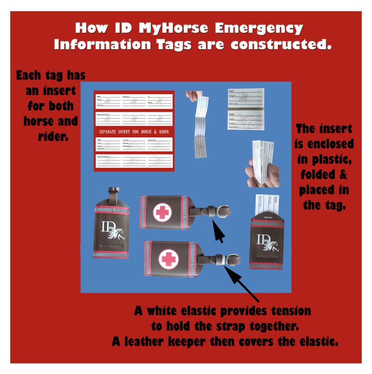 ID MyHorse Emergency Medical and Identification Tags were created by a veterinarian and lifetime rider. She had personally experienced injuries and separation from her horse on the trail. She realized how unprepared she was for an accident or natural disaster of any kind. That’s why we created the world’s best safety and medical ID for horse & rider. It’s also why Top Trail, Aging Horsewomen International, and Horse Habit TV endorse our ID’s!