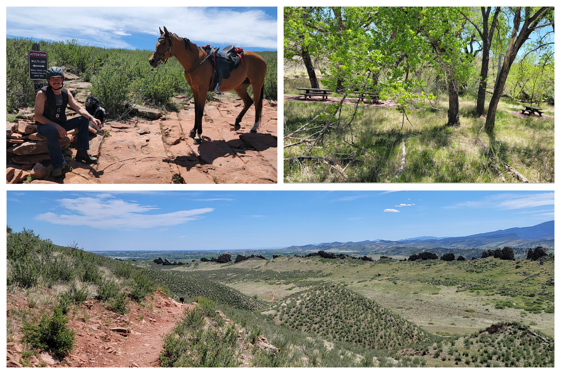 We had Kara the Border collie with us. Larimer County regulations stipulate a leash, but we had a remote collar. The two Larimer County Park Officers that greeted us upon our return said Boulder County allowed remote collars, but not Larimer… she needed to be leashed. It’s nearly impossible to leash a dog and ride a horse. The thing is, Kara is the first one to give other people and other dogs a wide berth, and she listens incredibly well. I’d put my unleashed dogs up against most folks’ leashed dogs any day. But… rules are rules.