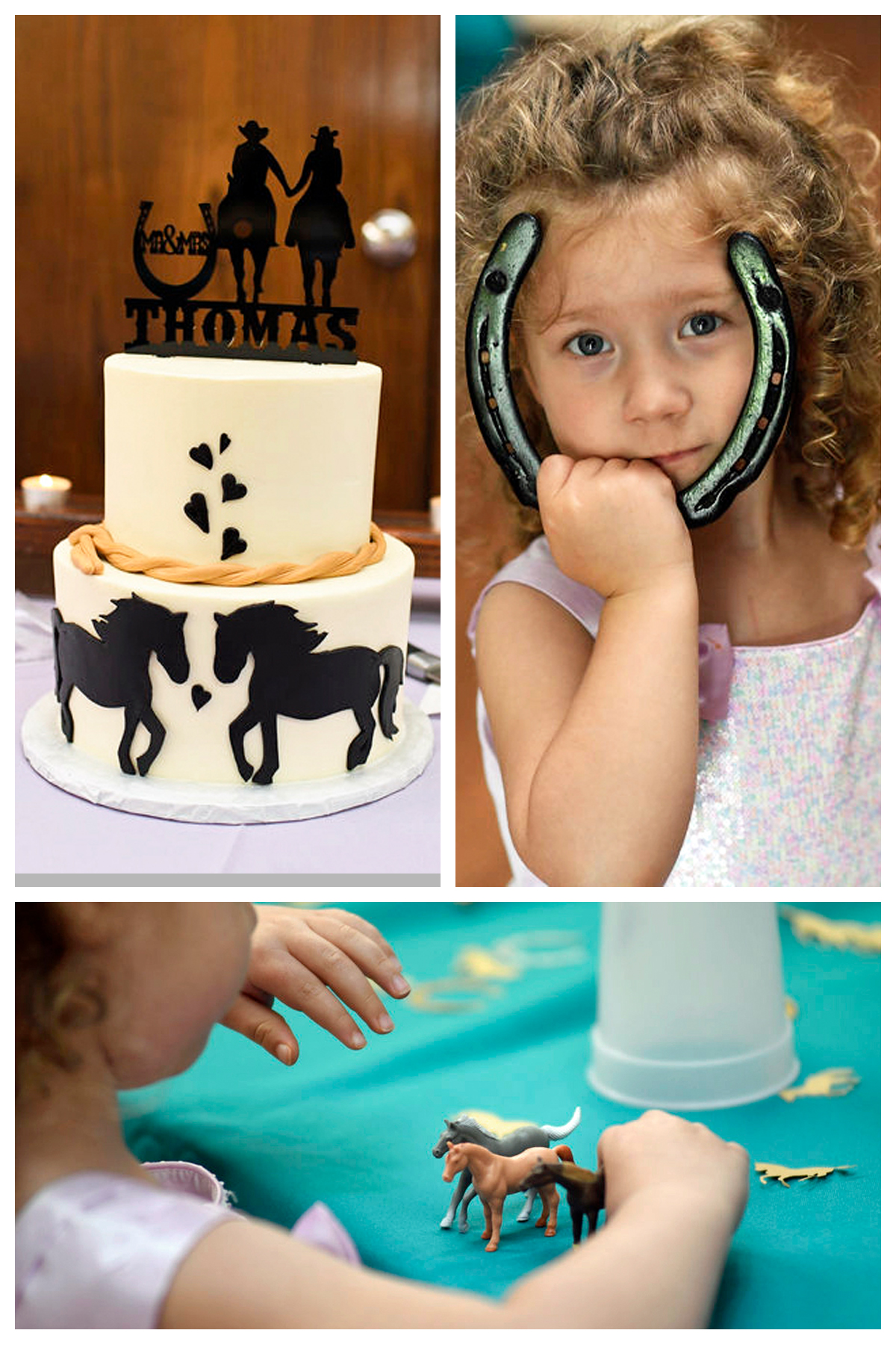 My grandkids really enjoyed the plastic horses scattered around the room and the spray-painted horseshoes. I barely remember tasting our “main” cake and I never even saw the sheet cake before it was cut. We sure had a wonderful time. Now we are living the dream, riding the mountains as often as possible, and just loving life and each other. Next week I will tell you about our first mountain ride, and the fire devastation that is so evident in our area.
