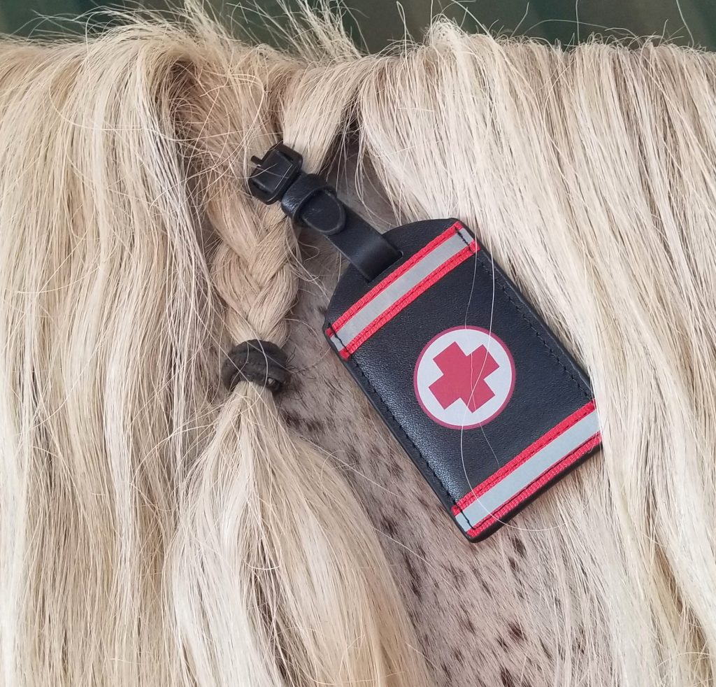 Be sure the tag is attached to the mane with the Red Cross logo facing out.