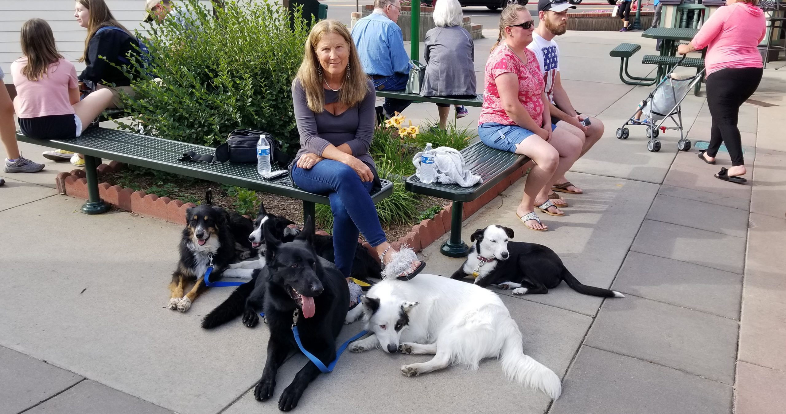 One of the comments made several times in the Facebook groups was that folks think their dogs are well-behaved, but they are not. Consequently, I am sure when I tell people, “My dogs are well-behaved”, many don’t believe me. This photo was taken in downtown Estes Park 18 months ago. For those of you familiar with Estes, we are sitting between two of our favorite restaurants, Mama Rosa’s and Poppy’s. People are all over the place, but my dogs are not. (We had five at the time, but are down to four!)