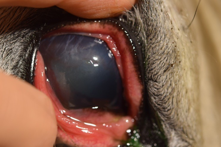 The feature photo shows Kadeen’s eye on his first appointment. This is a photo of his eye at his second appointment. To be sure, there is still significant evidence of inflammation. Blood vessels are still visible in the second photo. However, the ulcer has healed. In the last few days, it is obvious he is experiencing much less discomfort.