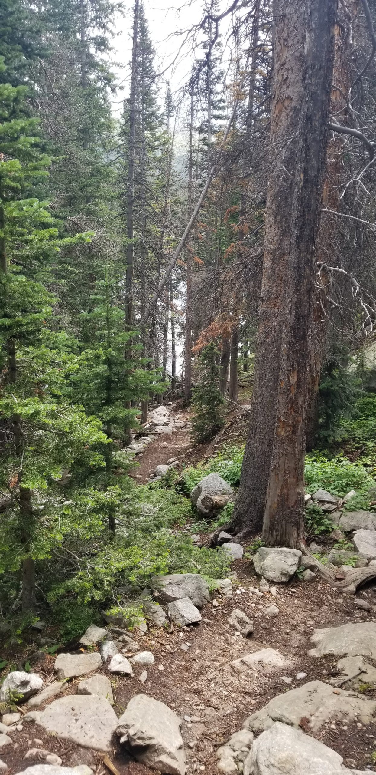 Lawn Lake is listed as having an additional 300 feet elevation gain as well as being 4 miles longer. We may try and get there before we head to Arizona in September. My gelding has started coughing in the last couple of weeks. I have started him on antibiotics but he is also a mild asthmatic. We are heavily impacted by smoke from the California wildfires. We’ll see what happens in the next few weeks before I challenge him with an even harder climb!