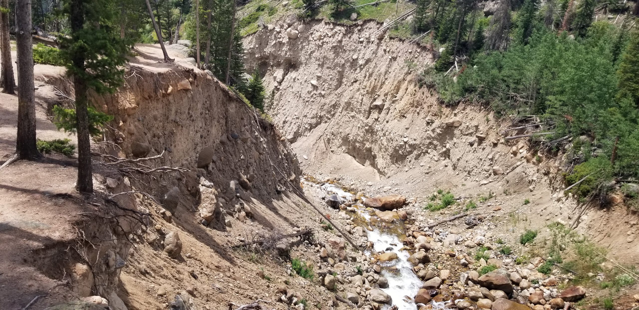 I took this photo to demonstrate the power of water in the mountains. I suspect this washout occurred during the flood of 2013. There are several areas like this that we pass on the way to Estes Park and back. There are a few cabins that are literally hanging on the edge of a cliff after the water washed away real estate. Flooding in burn scar areas remains a significant threat in this area.